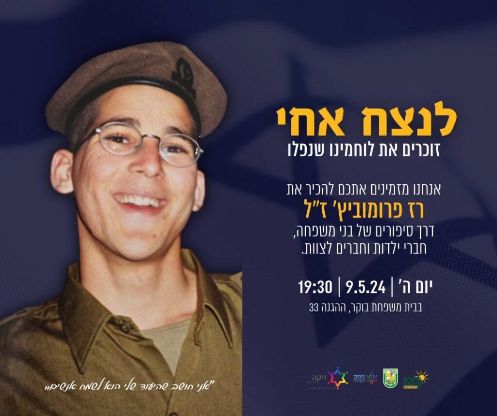 ערב "לנצח אחי" ייערך השנה לראשונה בגן יבנה לזכרו של רז פרומוביץ ז"ל