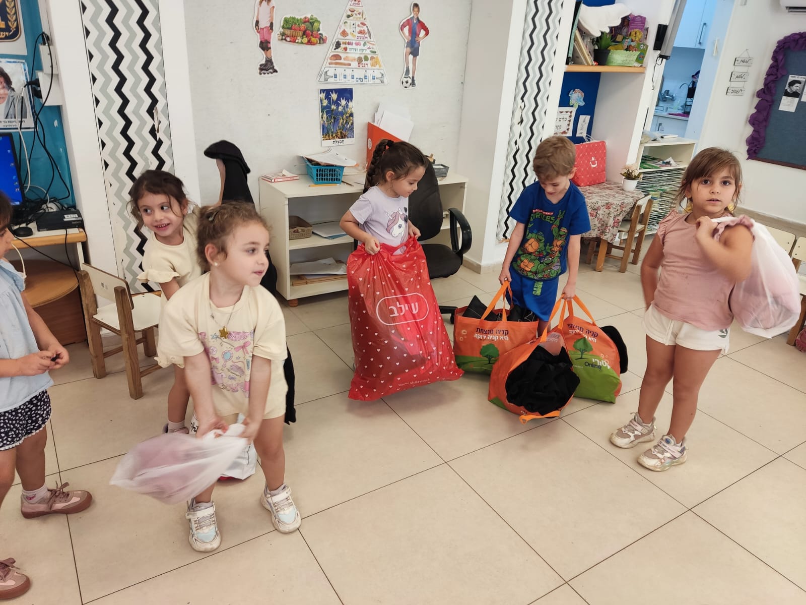 במהלך השבוע האחרון אספו ילדי הגן, יחד עם הוריהם והצוות החינוכי – הגננת שרית לוי אלנתן והסייעת דלילה היזמי – מאות פריטים חמים: בגדים, שמיכות, צעיפים, כובעים ופריטים נוספים. הפריטים נאספו, מויינו ונארזו בשקיות, שנמסרו לידי מחלקת הרווחה העירונית להפצה למשפחות הזקוקות לכך.