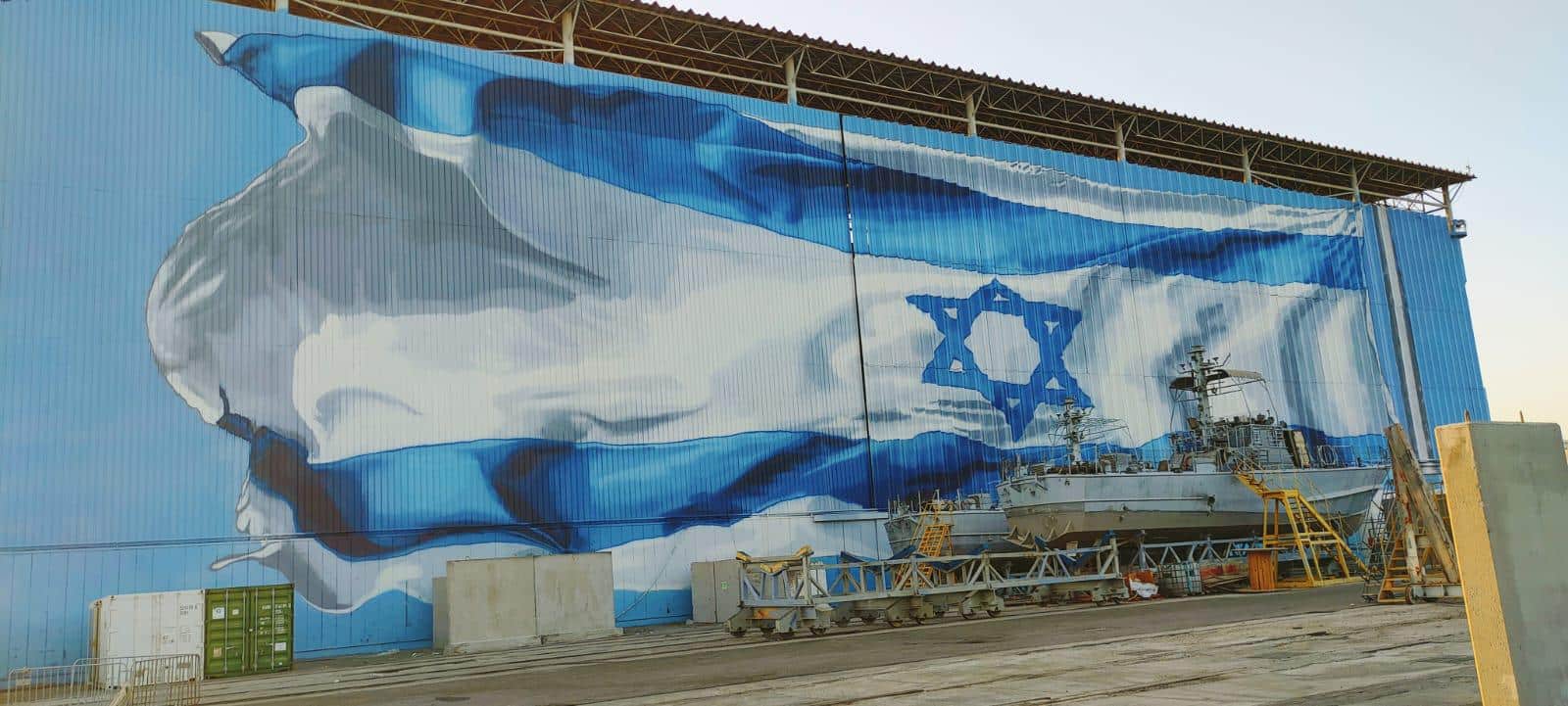 אותו דגל שצויר עליו לפני 11 שנים וניזוק מפגיעת כטב״מ עוין, חודש במהלך משותף של זרוע הים, משרד הביטחון, האגודה למען החייל ועיריית אילת, על ידי האומן רוני פלוארט פלוא, שצייר אותו לפני יותר מעשור. גם הפעם משתרע הדגל על אורך של 130 מטרים, 28 מטרים גובה וצויר בסגנון ריאליסטי.
