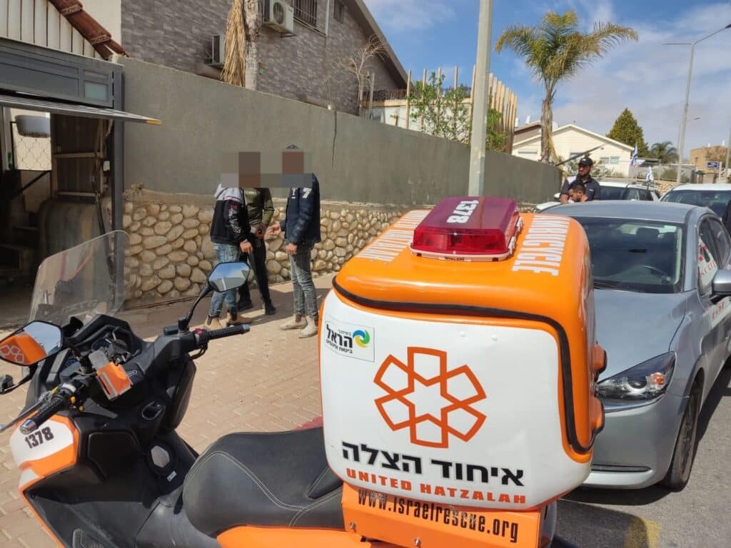 "הפועל נחבל בגפיו ובפלג גופו העליון כתוצאה מנפילה מסולם בחצר מבנה מגורים. הענקנו לו סיוע רפואי ראשוני בזירה ולאחר מכן הוא פונה לבית החולים סורוקה כשבשלב זה מצבו מוגדר בינוני".