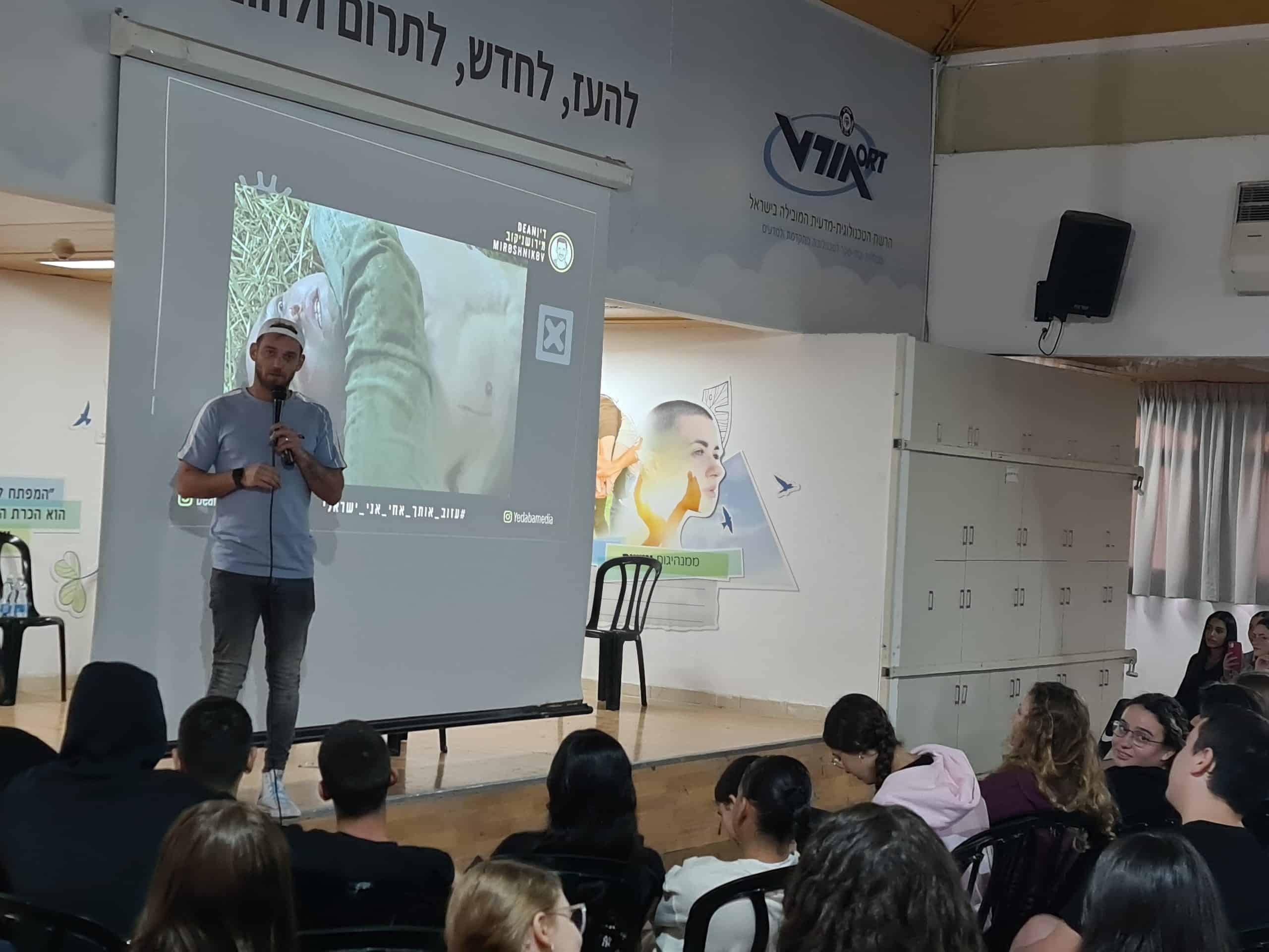 דין מירושניקוב הרצה לתלמידי אורט יצחק רבין