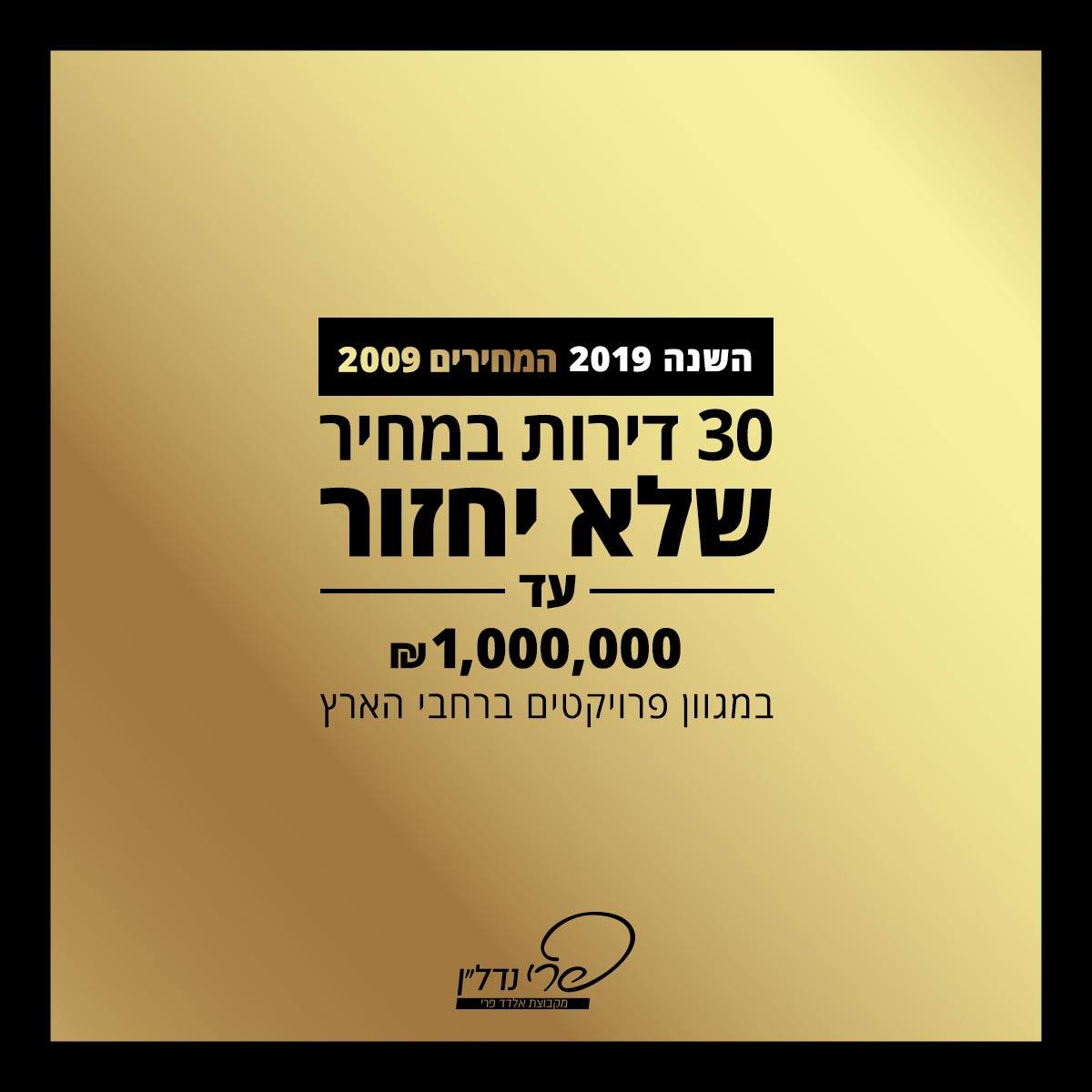 השנה 2019. המחירים? 2009! הקדישו 15 שניות לגלות כיצד תגיעו לדירה חדשה עד מיליון שקלים!כ-30 דירות אחרונות במחיר שלא יחזור; ברחובות, רמלה, לוד ועפולה. אל תגידו "לא ידענו", המבצע מוגבל! >>