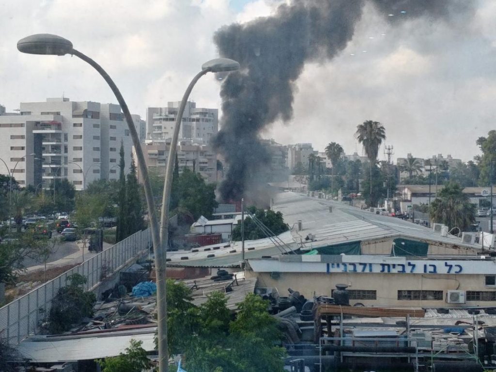 אש פרצה (הערב) בגב החנויות ברחוב האורגים באיזור התעשייה הישן של יבנה – לוחמי האש כבר הגיעו למקום ומטפלים בשריפה.