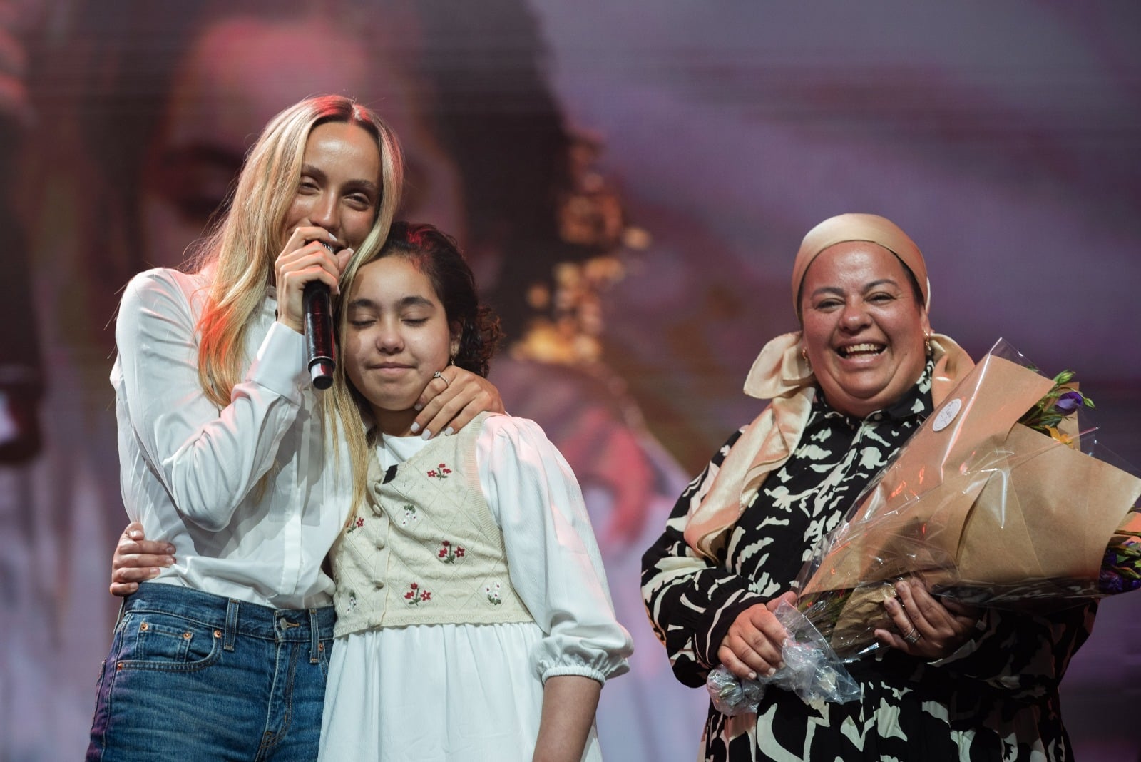 טליה הבריאה וכעת הן נפגשו לראשונה באירוע מיוחד של עמותת "עזר מציון" מול 3000 צעירות מתנדבות העמותה.