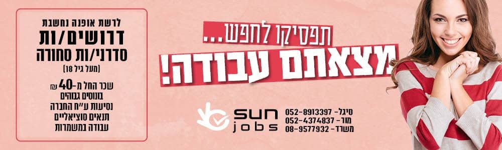 מתאימים/ות לתפקיד? צלצלו אל: סיגל 052/8913397, מור 052/4374837 או למשרדנו 08/9577932