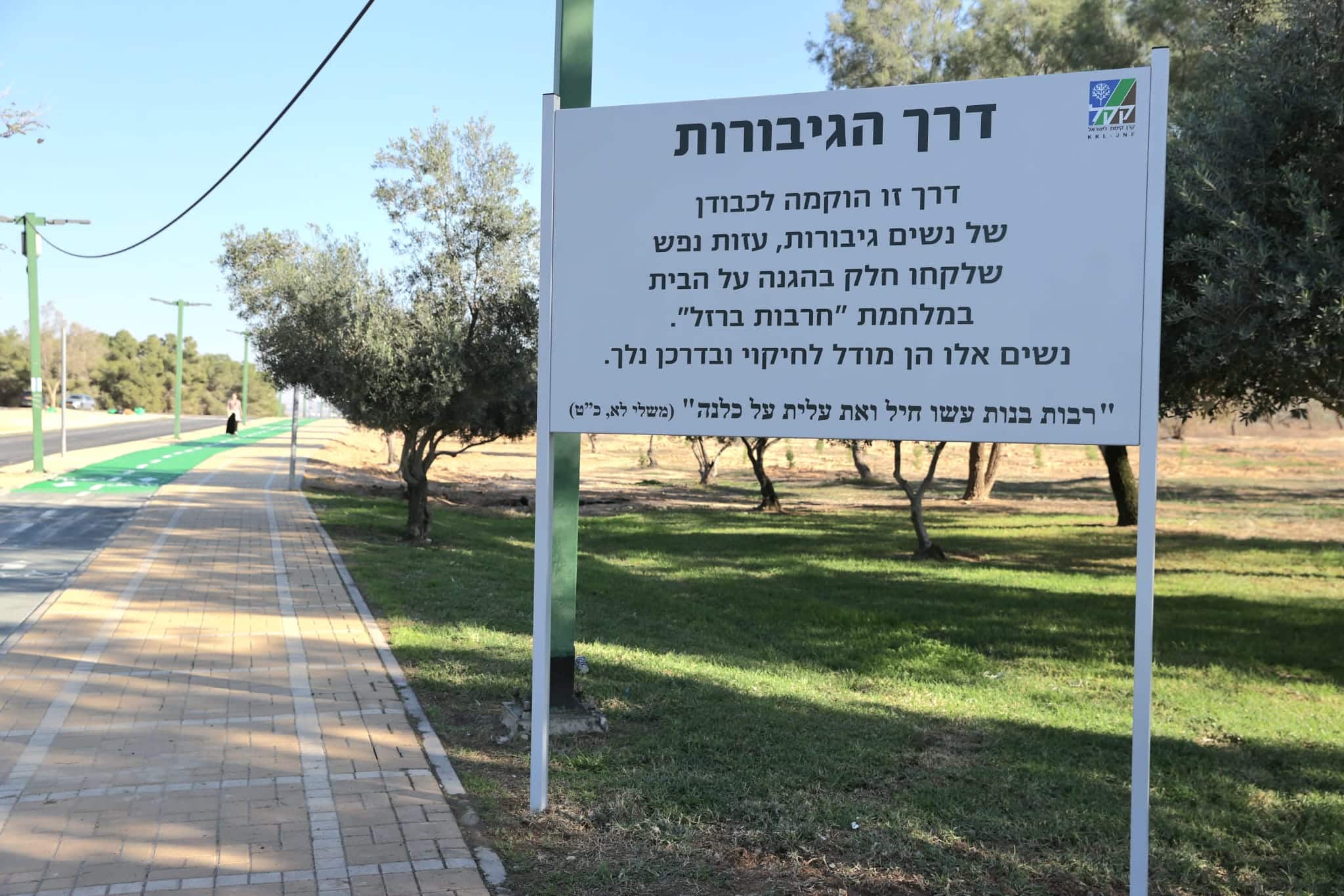 קרן קימת לישראל השיקה היום (יום א' ה- 7.1.24) את 'דרך הגיבורות' בכניסה לפארק אופקים, שנועדה להנציח את גבורתן של נשים ישראליות אשר פעלו בקור רוח והצליחו במעשיהן להציל חיים של עשרות אנשים בזמן המתקפה האכזרית של 7 באוקטובר.