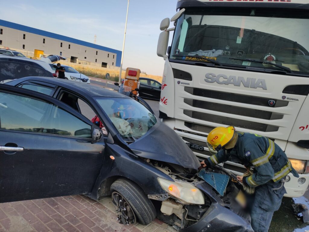 דרך החרושת בקרית גת: בן 30 חולץ מרכבו לאחר שהיה מעורכב בתאונה עם משאית