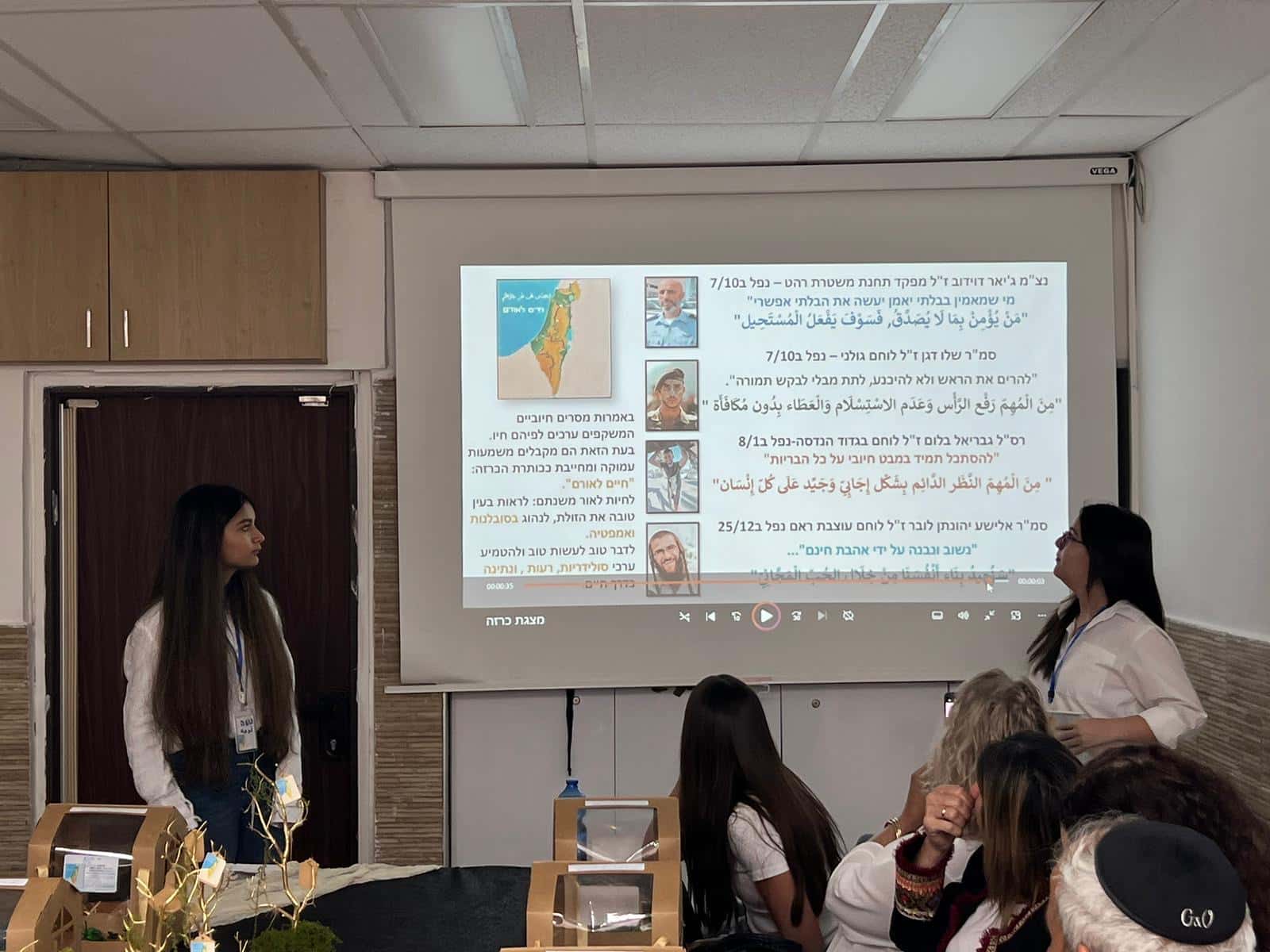 התלמידות נועה בן דוד ונועה בן עברי, שעיצבו את הכרזה הזוכה, סיפרו על תהליך עיצוב הכרזה שתכליתה העברת מסר חיובי במציאות הכואבת והמורכבת נוכח אירועי מלחמת חרבות ברזל.