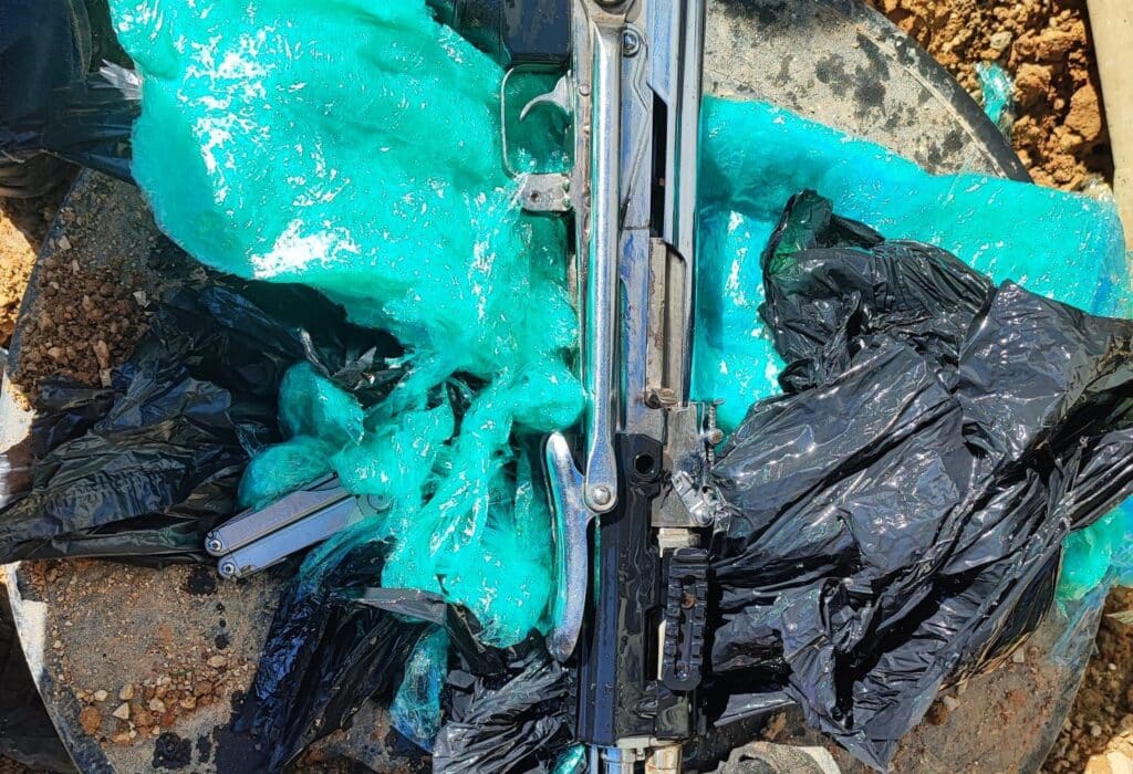 בתוך כך, השוטרים בצעו חיפוש ממוקד במתחם בשכונת פרדס שניר בעיר וחשפו פריטי אמל״ח,בהם: רובה קלצניקוב, מחסניות שונות, תחמושת וחומר חשוד כסמים מסוגים שונים במשקל של עשרות גרמים.