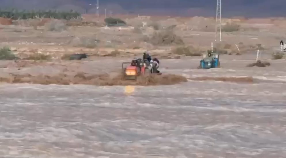 דרמה גדולה מתחוללת בשעה זו באזור נחל ערבה, שם פועלים כוחות חילוץ רבים להצלת קבוצה של 12 עובדים זרים שנסחפו בעקבות הסחף העז שנגרם מהמערכת החורפית. על פי הדיווח הראשוני, העובדים שהו במקום יחד עם טרקטור בזמן שהחלו הזרימות העזות בנחל.