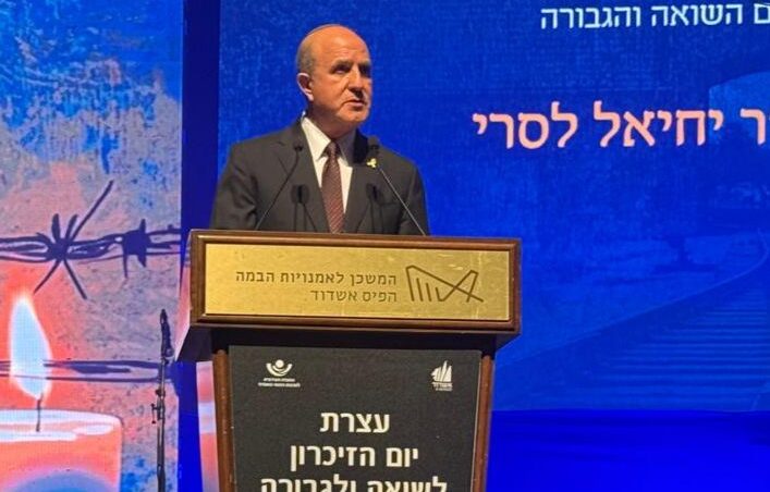 מתייחדים עם זכר הנופלים. ראש עיריית אשדוד, ד"ר יחיאל לסרי נשא דברים בערב יום הזיכרון לשואה ולגבורה >>
