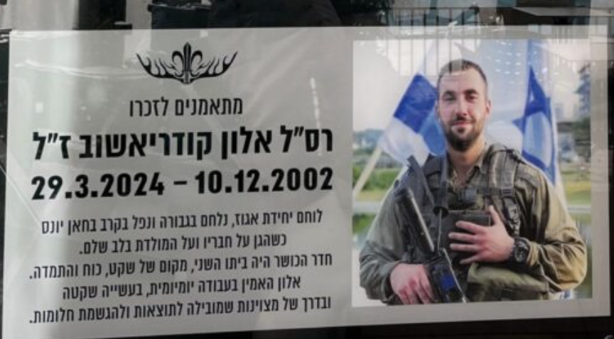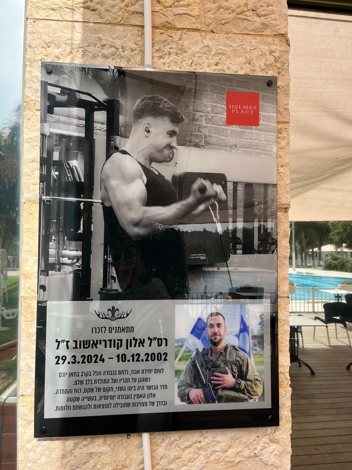 האימון האחרון של אלון: פינת הנצחה מרגשת לרס"ל אלון קודריאשוב ז"ל הוקמה ב"הולמס פלייס" מודיעין