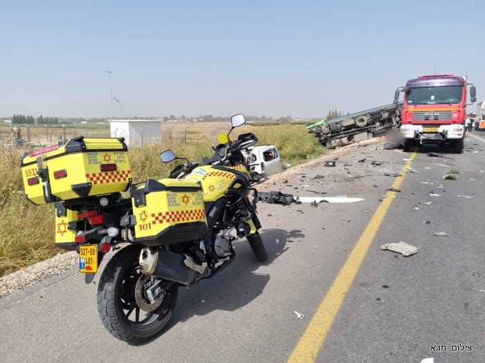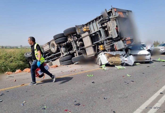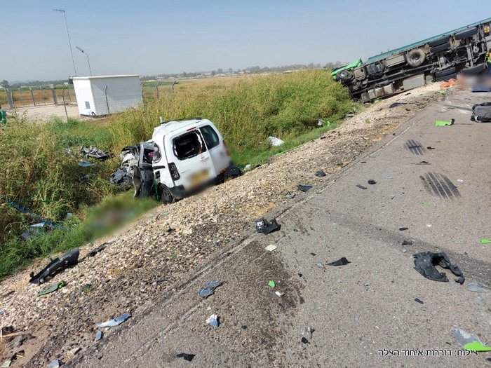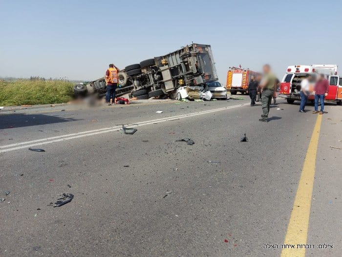 טרגדיה בכביש 3703 | בתאונת הדרכים התרחשה אתמול (שלישי) במעורבות משאית שהתהפכה ומספר כלי רכב נהרגו שלושה אנשים. ממד"א נמסר כי חובשים ופראמדיקים של מד"א קובעים את מותם של 3 נפגעים בתאונה ומעניקים טיפול רפואי ומפנים לבי"ח אסותא באשדוד וברזילי באשקלון 6 פצועים בדרגות פציעה שונות.  יוסי שקל מפקד האירוע מטעם כבאות והצלה מסר "מדובר בתאונה מורכבת מאוד בה מעורבת משאית ומספר כלי רכב, מחזה קשה מאוד לכל מי שנמצא בזירה. אנו מבצעים הערכת מצב בכדי לחלץ את הלכודים ובשלב זה חילצנו שלושה לכודים בינהם שני הרוגים. לכודים נוספים נמצאים בתוך כלי הרכב שנמחצו מתחת למשאית מבצעים פעולות חילוץ ובסיוע מנוף שיגיע לזירת האירוע לסיוע". מפקד מחוז דרום טפסר שמוליק פרידמן בדרכו למקום האירוע. מאסותא אשדוד נמסר:  בהמשך לתאונה הקשה בין קרית מלאכי למושב עזריקם, אל בית החולים הציבורי אסותא אשדוד פונו עד כה 4 פצועים – 1 במצב קשה, 1 במצב בינוני ו-2 במצב קל.