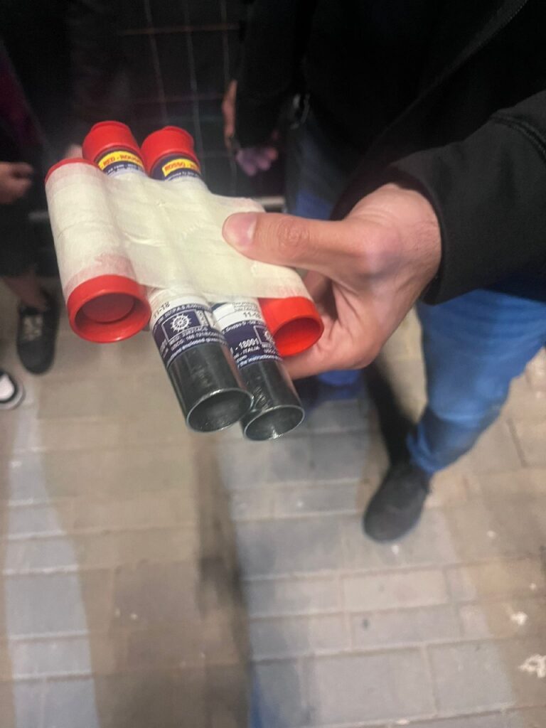 במסגרת בידוק שנערך במתחם האצטדיון נתפס על קטין בן 11 שתי אבוקות. קרוב משפחתו נעצר בחשד כי שידל את הקטין לבצע את המעשה.
