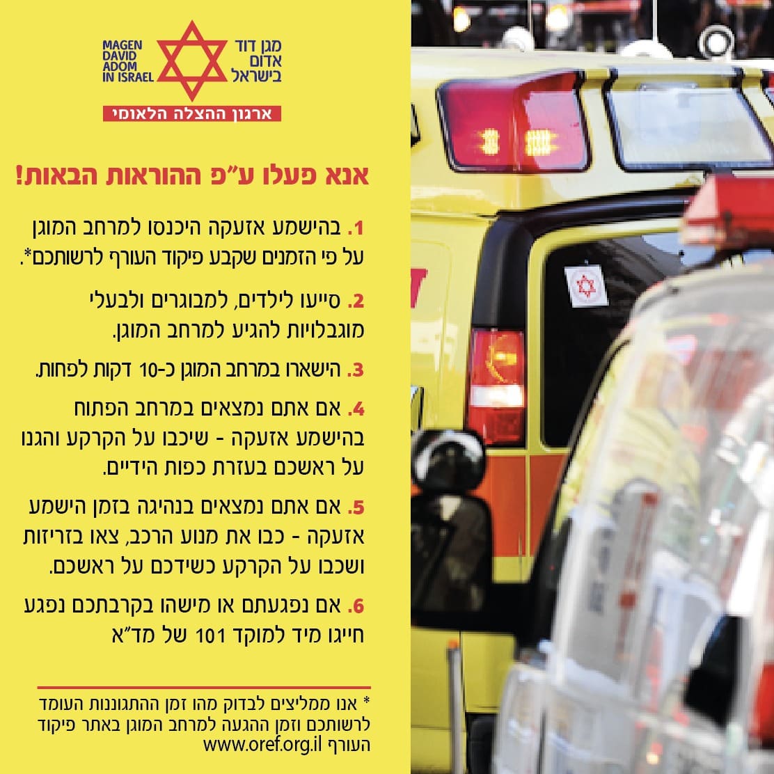 לבקשת דרור אהרון, "אנא מכם, הישארו בסמוך למרחבים מוגנים, הימנעו מהתקהלויות וזכרו שאזור ההתגוננות שלנו הוא 273 , 45 שניות הגעה למרחב מוגן".