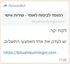 שימו לב – חייבים להיות חדים ומרוכזים כשאתם מקבלים לינקים לא מוכרים – שימו לב שהביטוח הלאומי לעולם לא ישתמש בסיומות שונות כמו למשל org, co.il, com, net וכו' אלא רק gov.il