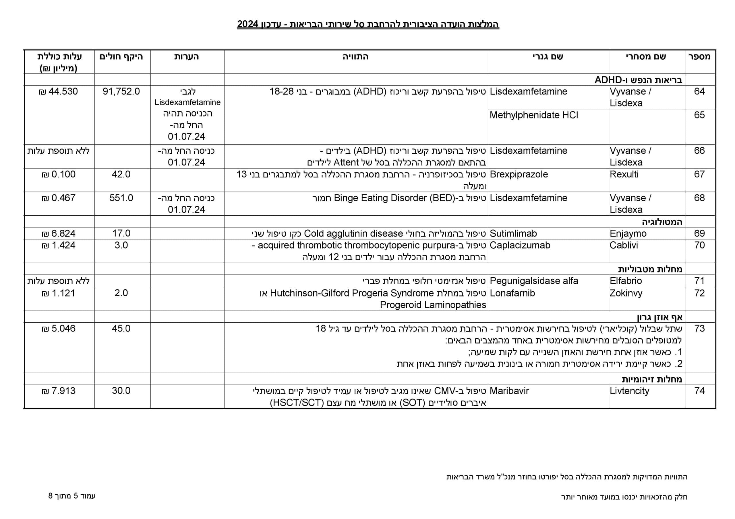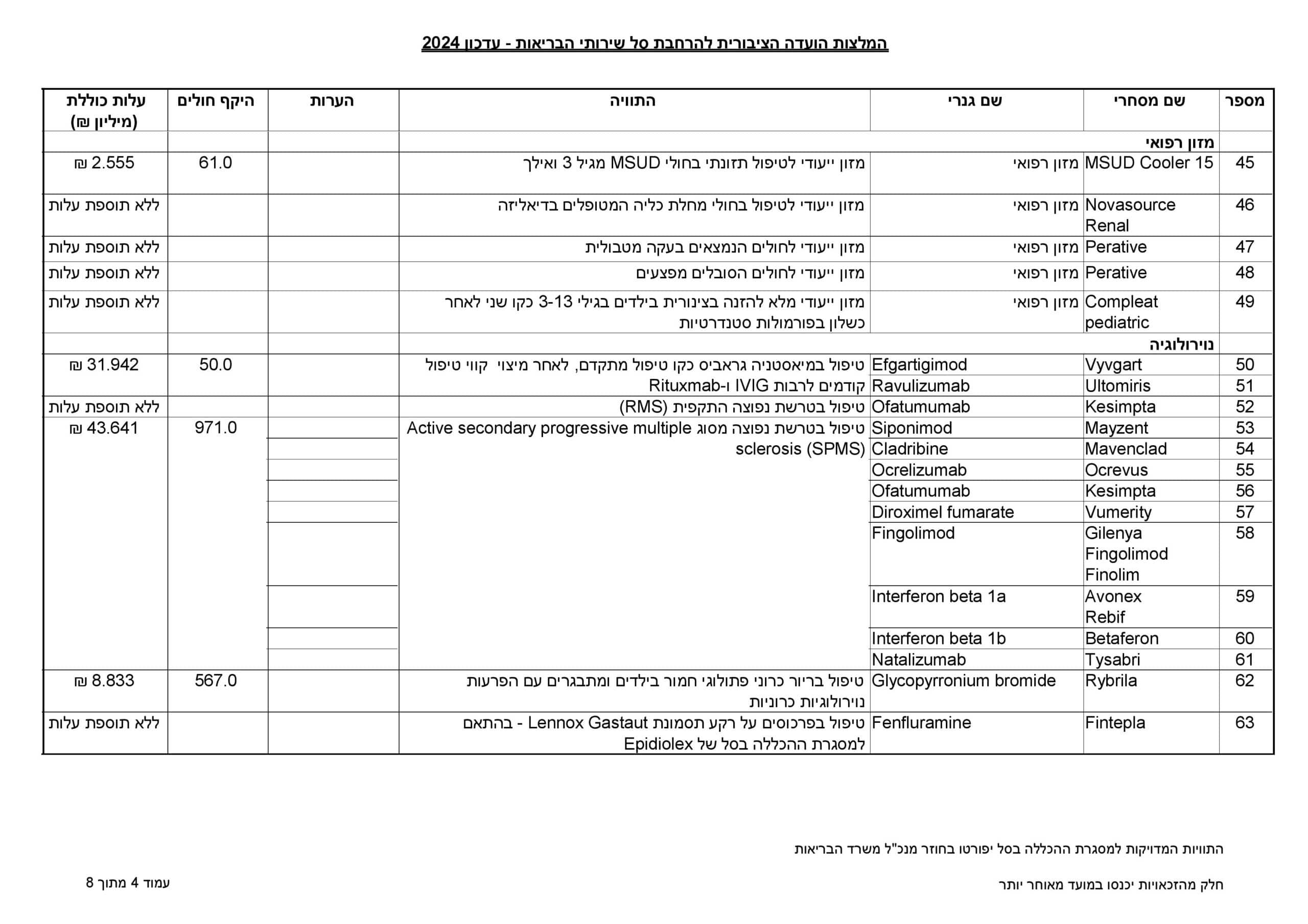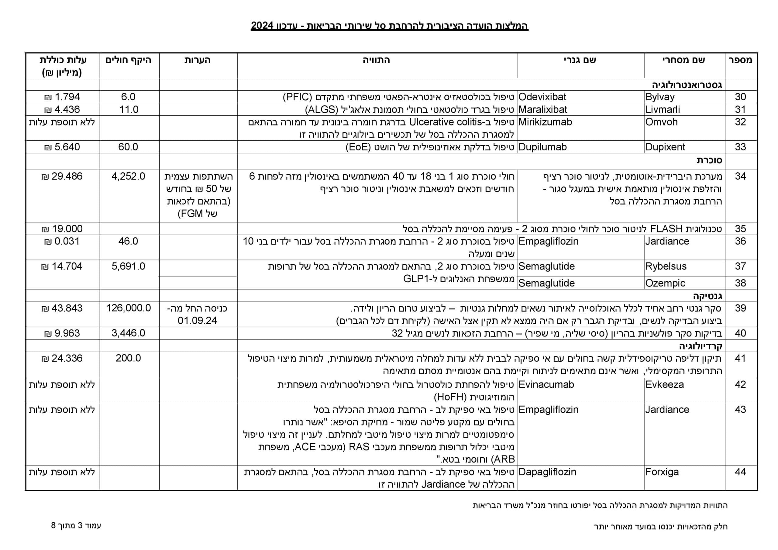 הוועדה הציבורית להרחבת סל שירותי הבריאות לשנת 2024 סיימה את דיוניה והגישה את המלצותיה לשר הבריאות