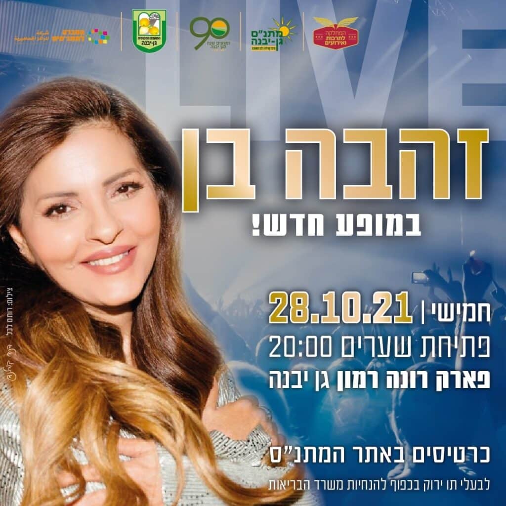 "מסיבות טכניות שונות, המופע של זהבה בן שהיה אמור להתקיים היום, בוטל" – כך הודיעו לפני זמן קצר (חמישי) במתנ"ס גן יבנה. רוכשי הכרטיסים יקבלו זיכוי כספי מלא באמצעות כרטיסי האשראי. זהבה בן תגיע ליישוב בהמשך לאירוע חגיגי אחר. זהבה בן, זמרת השנה 2021, חלוצת הזמר המזרחי, מהזמרות המצליחות והאהובות בישראל, הייתה אמורה להגיע לגן יבנה למופע סוחף, מרגש ועוצמתי עם שרשרת להיטים בלתי נשכחים וביניהם :" "טיפת מזל", "ואני שטה", "קטורנה מסאלה", "חוף זהב", "מלך אמיתי", "אהבה כזו", "אולי בעולם אחר", "יש מי שאוהב אותי", "חיים שלי" ועוד.