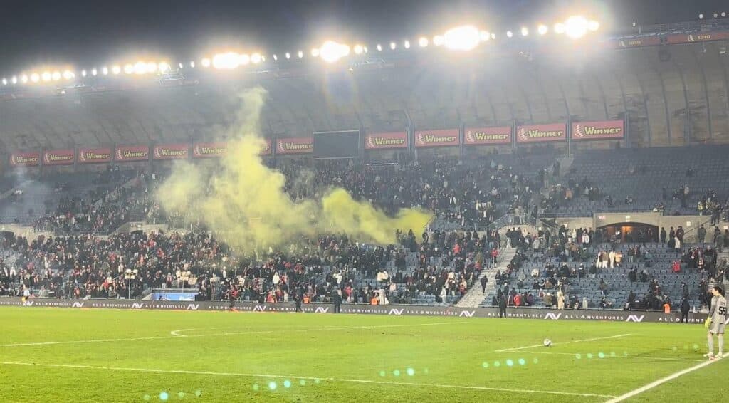 התמונה מהדלקת רימון העשן ביציע אוהדי הקבוצה היריבה