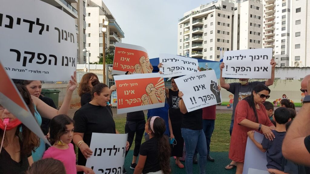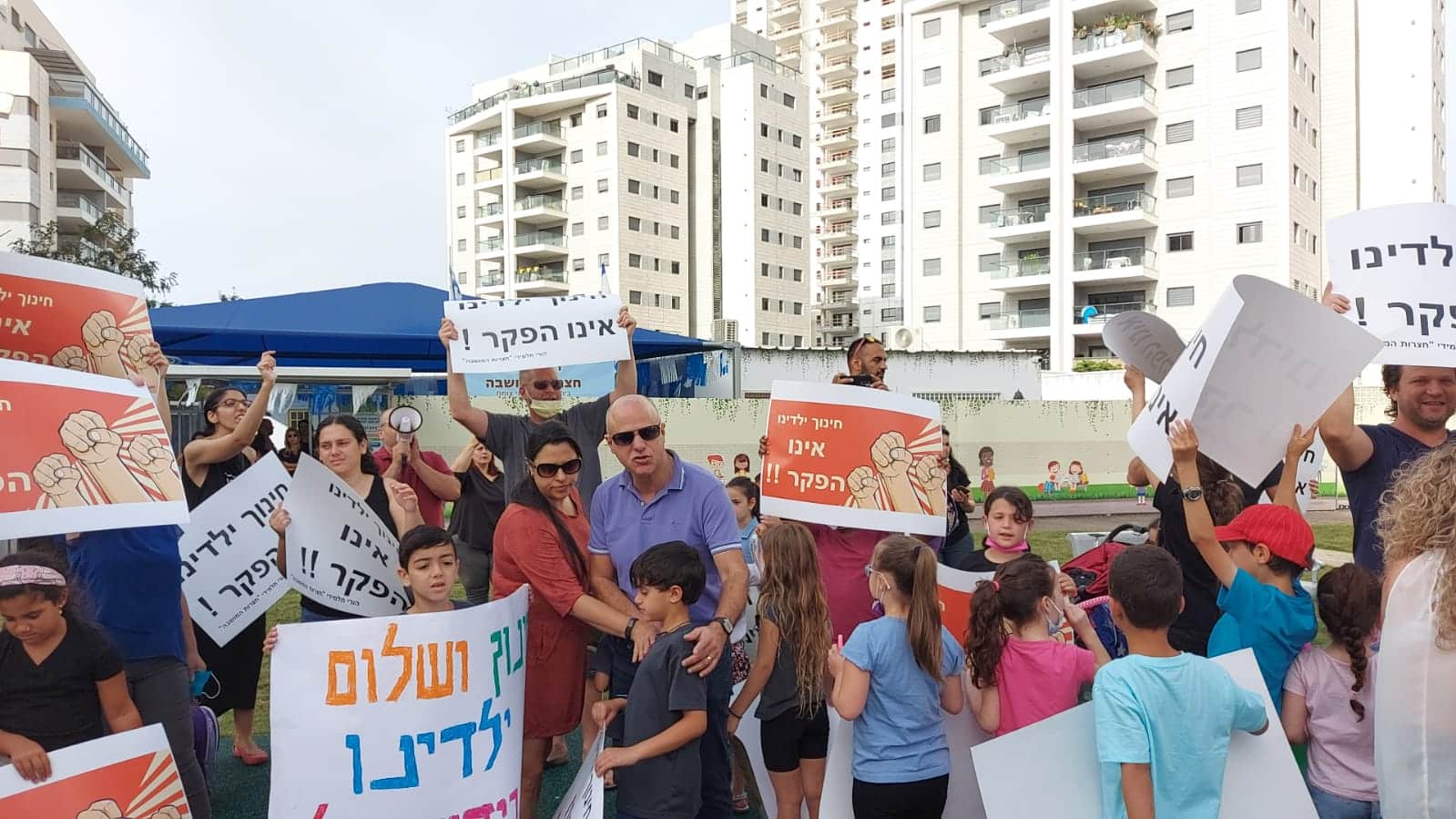 הורים מבית הספר הצומח בשכונת חצרות המושבה שבתו הבוקר (ראשון) עם ילדיהם בשעה הראשונה, כשהם מצוידים בשלטי מחאה. מעיריית רחובות נמסר: " תהיה הפרדה מלאה בין תלמידי חצרות המושבה לתלמידי השיטה".
