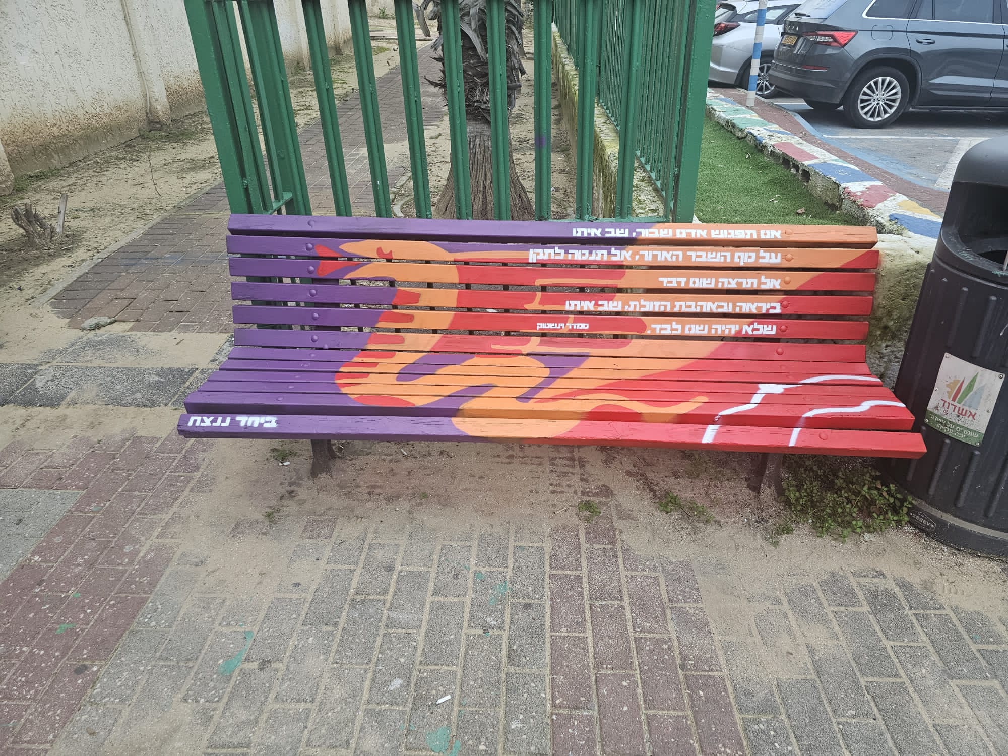 יוזמה אישית של מומי סלע, תושב העיר, הלכה והתרחבה והפכה למיזם "ספסלי חברות" – יצירה אומנותית על גבי ספסלים המשלבת טקסט משיר, צבעים וגרפיטי. השותפים: היחידה לשכונות ותיקות והון חברתי, מינהלות רובעים א', ב', ו'. בימים הקרובים יוצבו 10 ספסלים בכל אחד מהרובעים. הספסל הראשון הוקדש לרס"ן חן בוכריס הי"ד – סגן מפקד יחידת מגלן שנהרג ב-7/10.