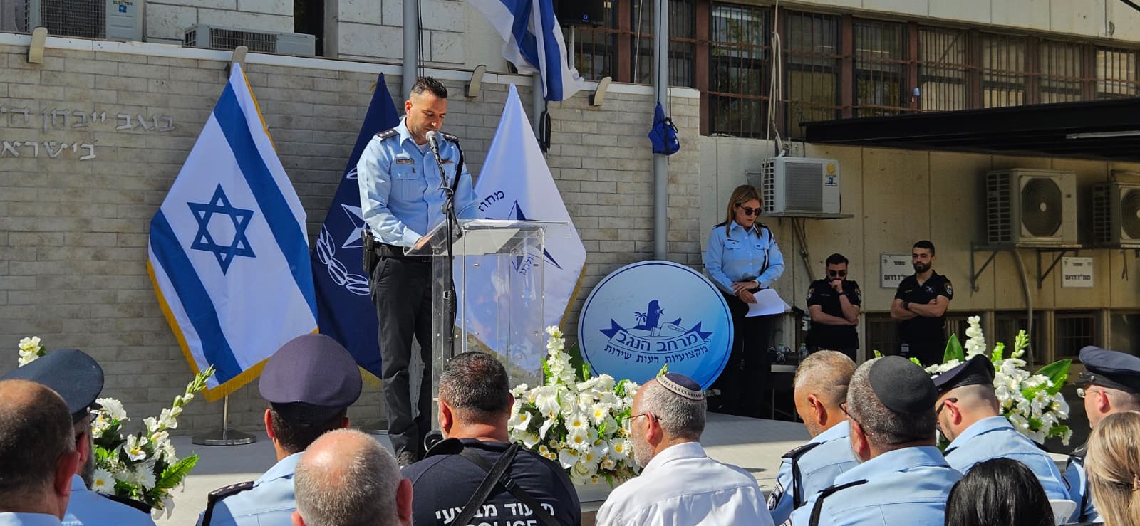 תחת דגל הלאום המורכן לחצי התורן, קיימו הבוקר (שלישי) שוטרי וקציני מחוז הדרום של משטרת ישראל את טקס יום הזיכרון לשואה ולגבורה. הטקס נערך במעמד מפקד המחוז, ניצב חיים בובליל, ניצב בדימוס דויד ביתן, סגל הפיקוד המחוזי, רב המחוז רפ״ק ראובן כמיל, ושורת קצינים, מתנדבים ונכבדים.
