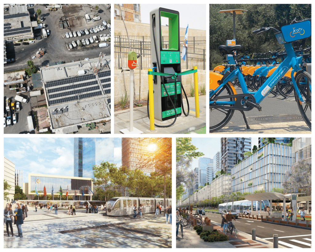 תמונות והדמיות מפעילות חברת עדן – פאנלים סולאריים ואנרגיה מתחדשת, מיזם ירופאן להשכרת אופניים, רובע הכניסה לעיר, קידום תוכניות בינוי בתלפיות, שקעי טעינה לרכבים