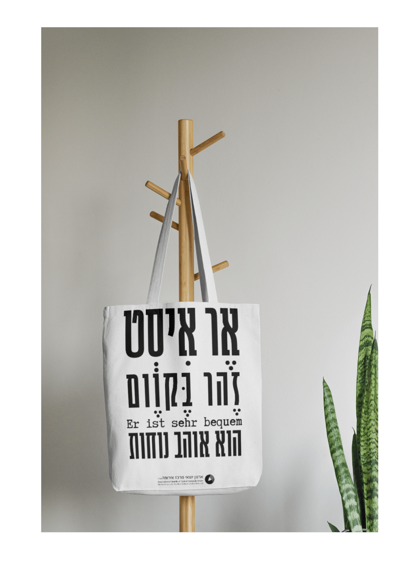 ארגון יוצאי מרכז אירופה (א.י.מ.א) מציעים סדרת תיקי בד חדשים עם משפטים שרק ייקים אומרים.