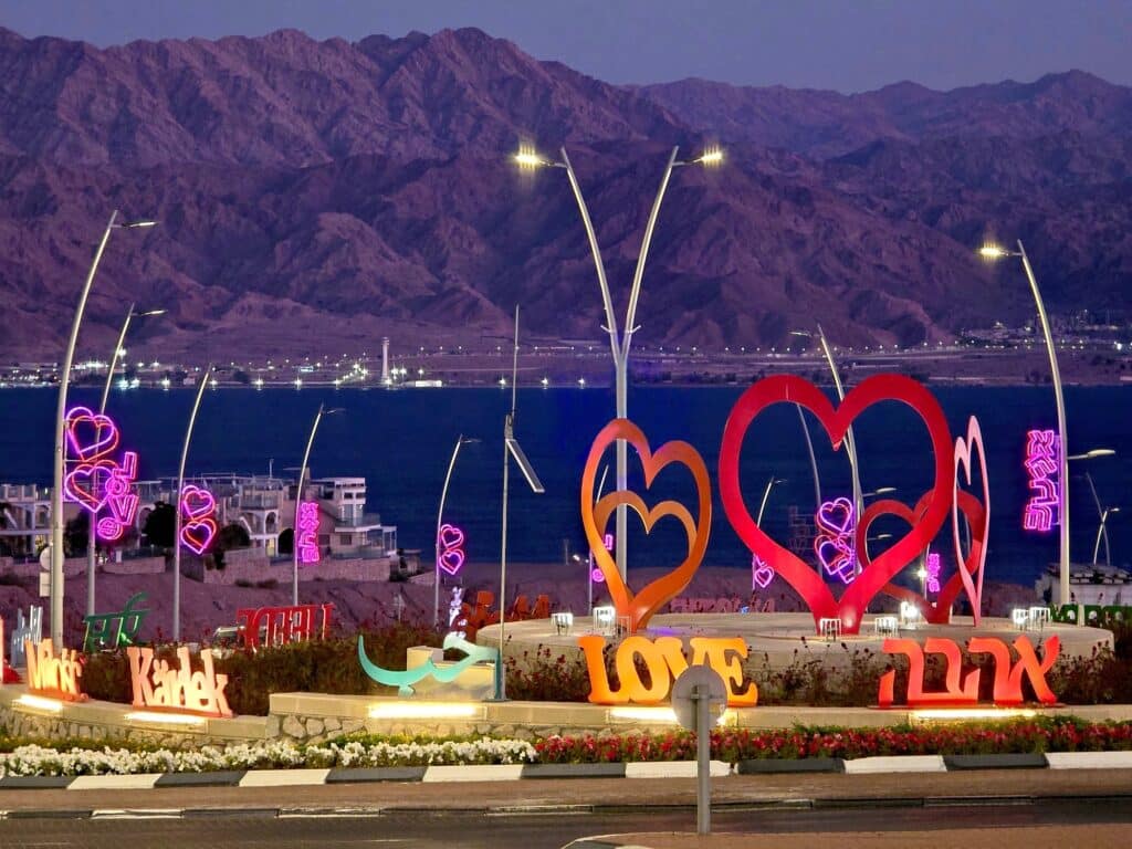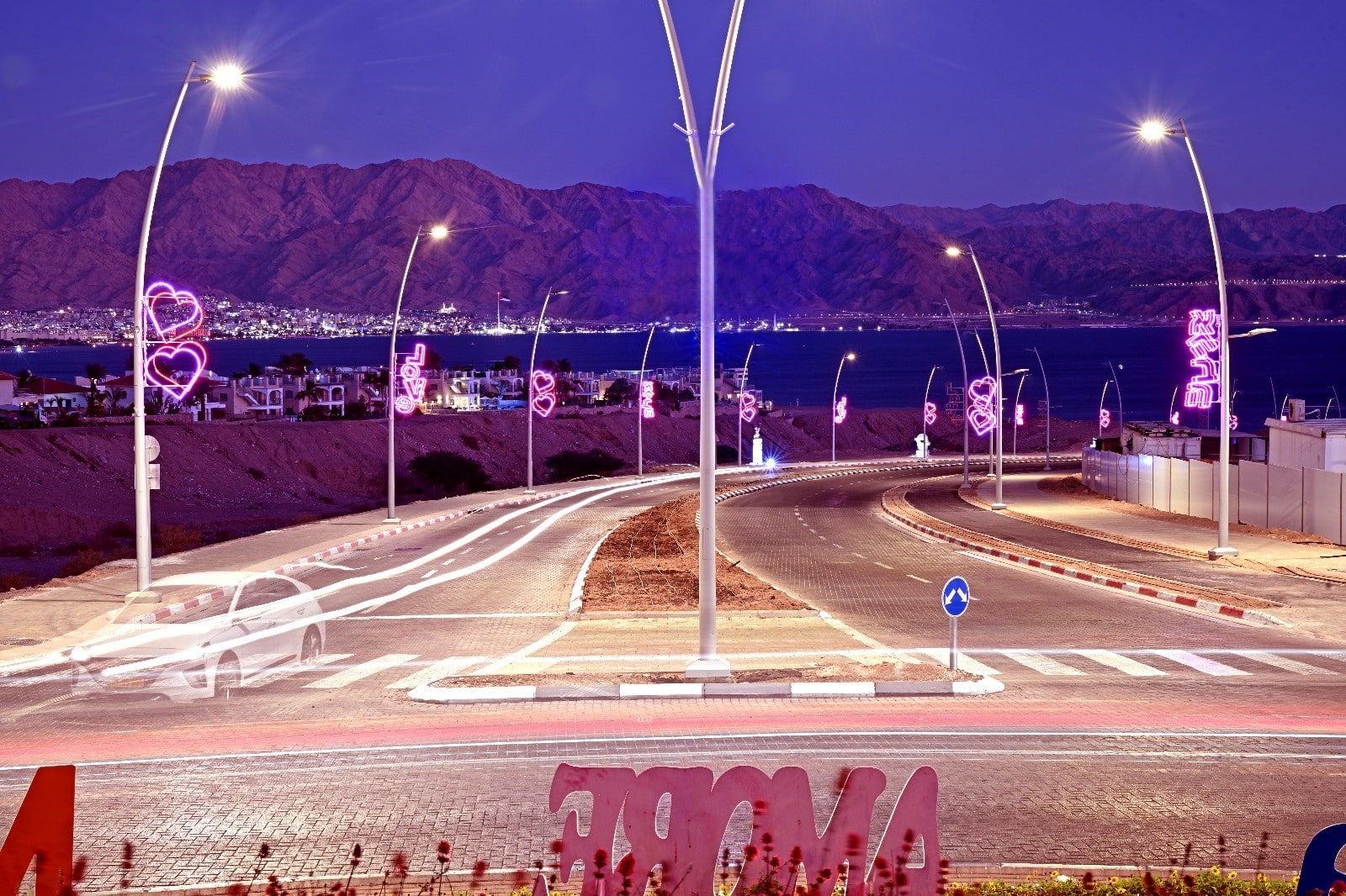 הפרויקט "דרך האהבה" The love way הכולל תאורה בצורת לבבות ורודים והמילים LOVE ואהבה, עוצב ובוצע עבור עיריית אילת על ידי חברת MK Illumination Israel , בהובלת ענת וסיון פרג' אומני התאורה והצילום.