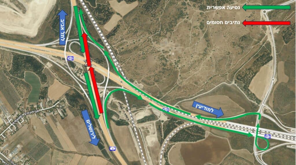 מוצע למשתמשי הדרך להשתמש בדרכים חלופיות כגון מעקף דרך מחלף הכניסה לפאתי מודיעין- מרכז עינ"ב.