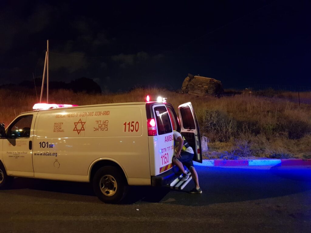 פראמדיק מד"א אריה מאיירס וחובש רפואת חירום במד"א משה חמד סיפרו: "כשהגענו למקום ראינו את הרכב בראש הגבעה כשהוא הפוך על צידו. צעיר בן 22 שנפגע באורח קל שכב מחוץ לרכב ו-2 פצועים נלכדו בתוכו. תוך כדי פעולות החילוץ של לוחמי האש הענקנו לפצועים טיפול רפואי מציל חיים שכלל קיבועים ומתן תרופות. הנער שנפצע באורח בינוני וחולץ ראשון הועבר במהירות לאמבולנס ופונה לבי"ח יחד עם הצעיר שהיה מחוץ לרכב. והפצוע קשה, שסבל מחבלה בראשו הורדם והונשם בשטח ופונה גם כן בניידת טיפול נמרץ לבית החולים".
