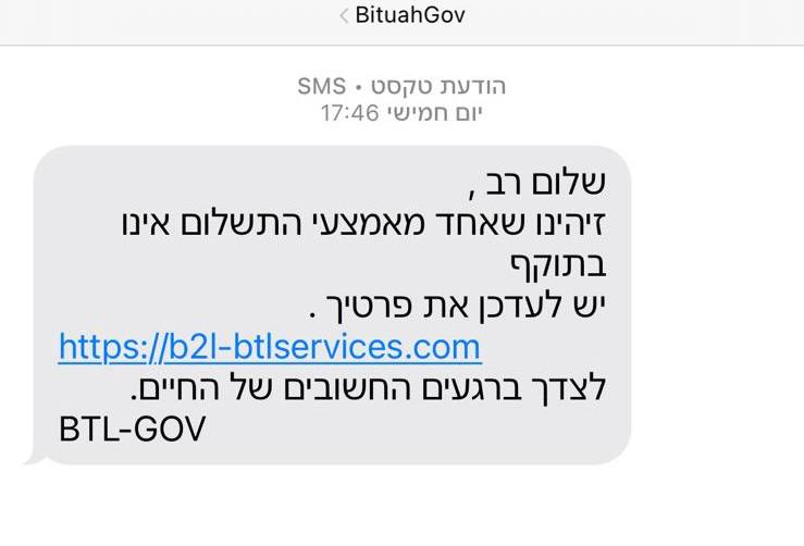 המלצת הביטוח הלאומי: אם אתם מקבלים הודעה עם קישור שלא מסתיים ב-gov.il – אין ללחוץ עליו ואין למסור פרטים אישיים.