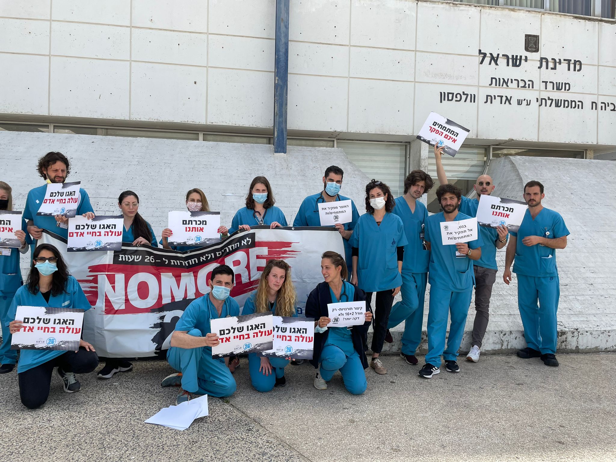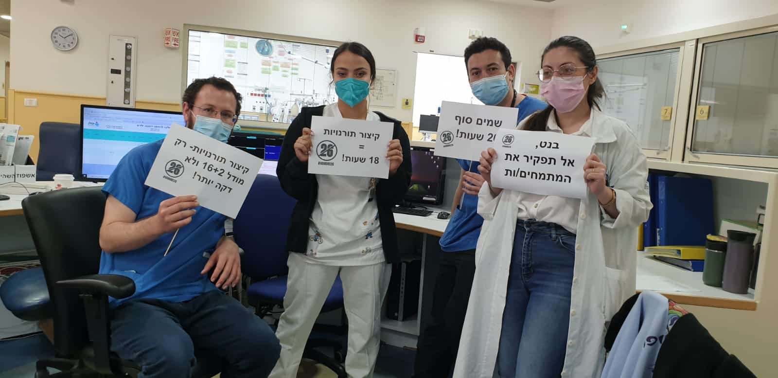 עדכון תקשורת ארגון הרופאים המתמחים 'מרשם': עשרות מתמחים, סטאז'רים וסטודנטים בביה"ח וולפסון בחולון, אסותא אשדוד וקפלן ברחובות- מחו היום נגד הכוונה להוציא לפועל מתווה "קיצור תורנויות" של 20-22 שעות, הכולל "מנוחה" של המתמחים בביה"ח. בימים הקרובים צפויות פעולות מחאה בביה"ח נוספים.