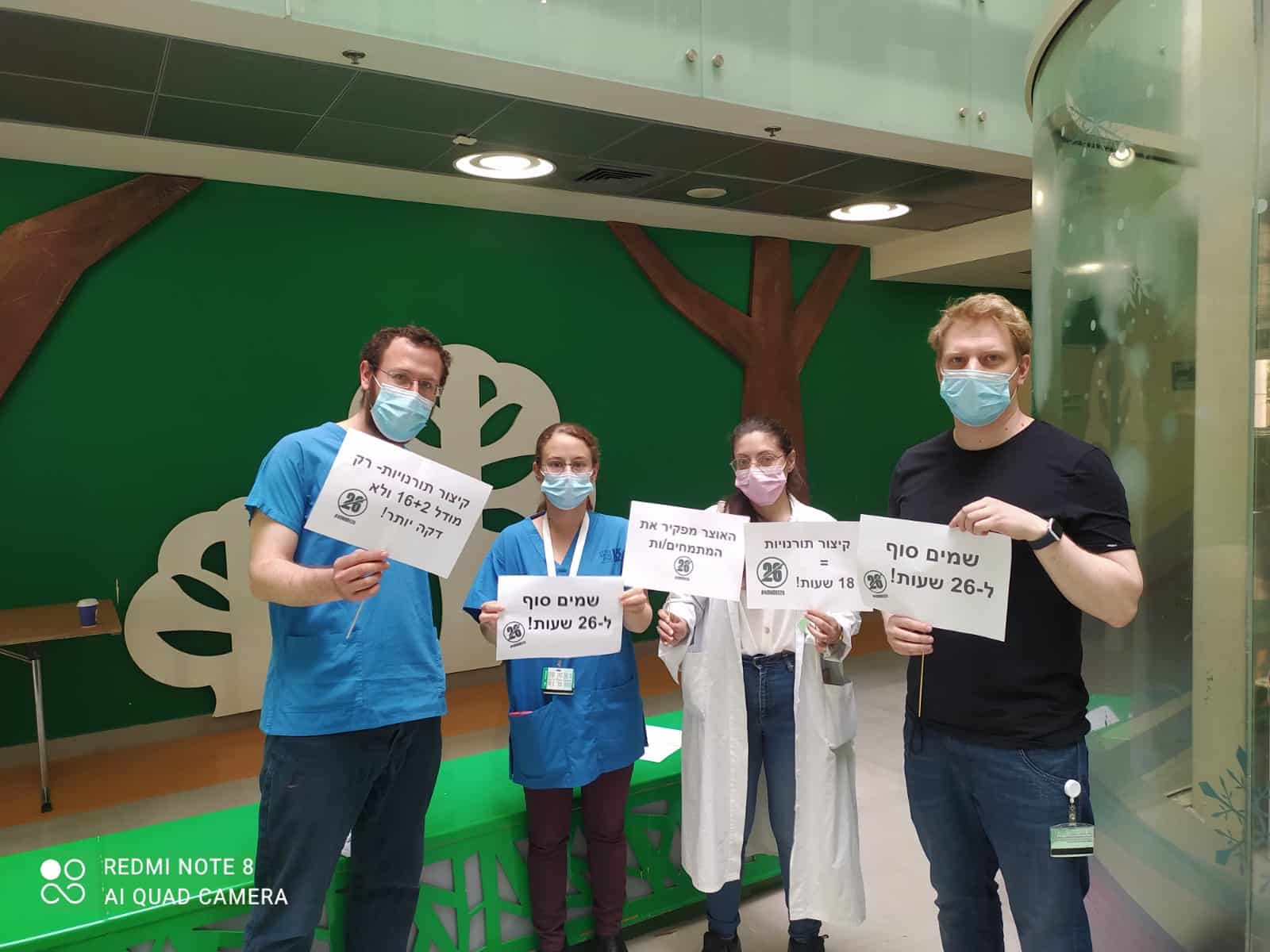 ארגון הרופאים המתמחים 'מרשם': "המחאה תצא גם מגבולות ביה"ח – אנחנו לא נאפשר למחטף הזה לקרות. אנחנו דורשים קיצור תורנויות אמיתי – בהתאם למה שנקבע בהיתר העסקה של שרת הכלכלה- רק 16+2 – ולא דקה יותר! כל מתווה הכולל "מנוחה" למתמחים, בתוך כתלי ביה"ח, הוא פייק מתווה ופייק קיצור תורנויות!".