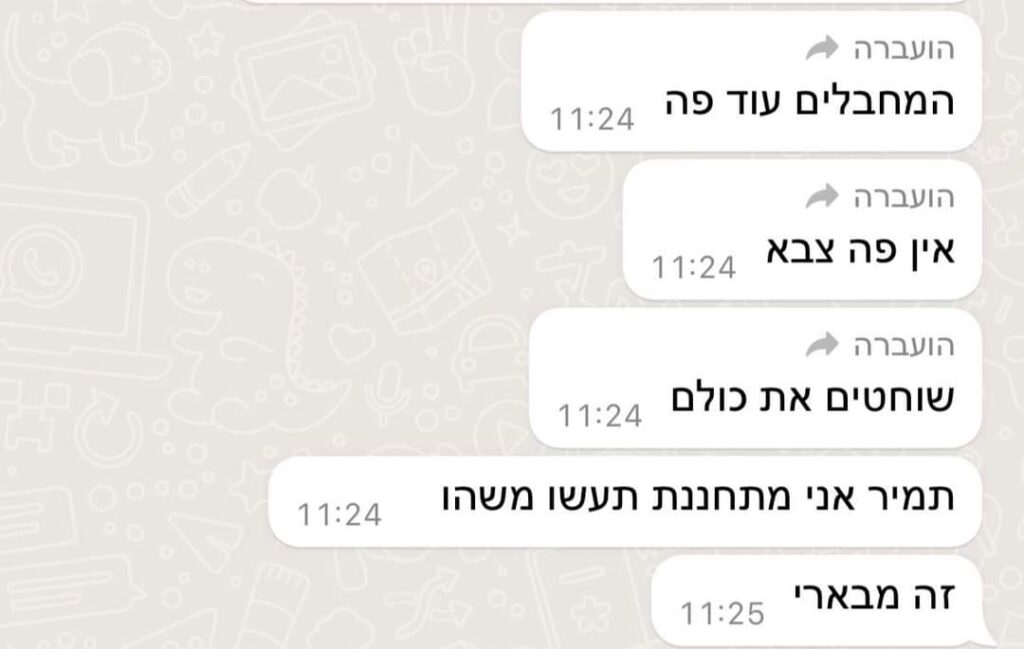 הודעת הווטסאפ שמזעזעת את המדינה! כתב החדשות תמיר סטיינמן קיבל הודעת ווטסאפ לסלולארי הפרטי שלו ובו נכתב "המחבלים עוד פה, אין פה צבא, שוחטים את כולם, תמיר אני מתחננת תעשו משהו".