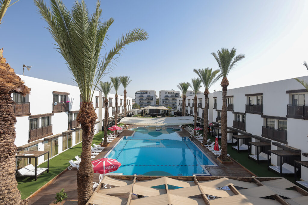 בשורה התחתונה: המלון טוב מאוד, בפחות משלוש שנים עשה מהפכה מכל הבחינות, והעלה את הרמה במספר כוכבים, בעיקר שם דגש על אירוח משפחות – מציע נופש גם בחודשים החמים והמבוקשים של הקיץ, גם בחגים, ולאורך כל השנה – כאמור במחירים שפויים ונוחים. המלון מעוצב בסגנון אוריינטלי מודרני, בנוי סביב בריכת שחייה גדולה, מרווחת, ומרהיבה המוקפת דקלים. במלון 215 חדרים מסוגים שונים, בנוסף לחדרי סטנדרט, וחדרי גן ישנם חדרי משפחה גדולים ומרווחים, סוויטות גן, עם דלתות מקשרות המבטיחים חופשה מושלמת לזוג שרוצה לקחת את הילדים, אבל רוצה להרגיש את הרומנטיקה באוויר. במלון תמצאו לובי רחב ומעוצב המשקיף לבריכה, למסעדה ולבית הכנסת. ובית הכנסת, לפחות לי, היה משמעותי בהחלט.