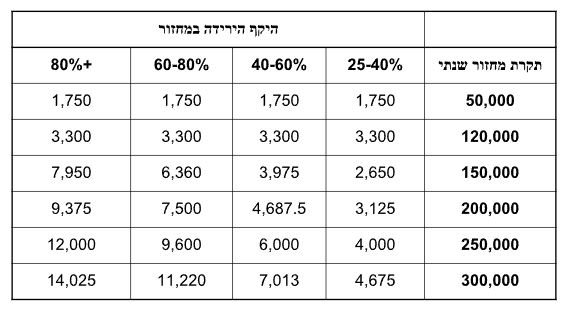 הפיצויים לעסקים עם מחזור עסקאות של 300 אלף – 100 מיליון ש"ח – יהיו כפופים לתקרה של 600 אלף ש"ח. לעסקים עם מחזור של 100 – 300 מיליון ש"ח – תקרה זו תעלה בהדרגה עד לרמה של 1.2 מיליון ש"ח. הפיצויים לעסקים עם מחזור עסקאות של 300 – 400 מיליון ש"ח יהיו כפופים לתקרה של 1.2 מיליון ש"ח.