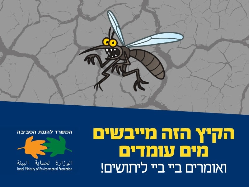 המשרד להגנת הסביבה החל היום (א') בקמפיין הסברה להעלאת המודעות בקרב הציבור הרחב להנגשת המידע למניעת מפגעי יתושים במרחב הפרטי והציבורי ולדרכי התגוננות מפני עקיצות יתושים בקיץ, המדגיש את המסר כי רק ייבוש מים עומדים מונע התפתחות של יתושים.