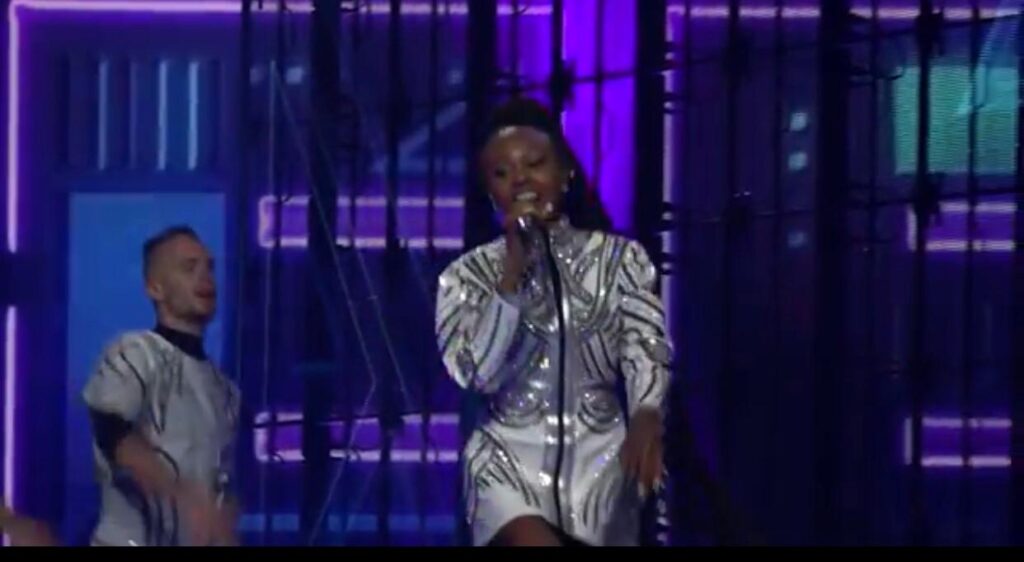 עדן עלתה לבמה כשהיא לבושה בשמלה לבנה משובצת באבני סווארובסקי שעיצב אלון ליבנה. הבגד רקום במה שנראה כמו דוגמאות של צמות שחורות וכסופות – וזה לא הבגד היחיד שאיתו היא תופיע במהלך שלוש הדקות שלה. בחלק האחרון של ההופעה, הרקדנים ״קורעים״ מעדן את השמלה והיא נותרת בבגד גוף שחור ושקוף.
