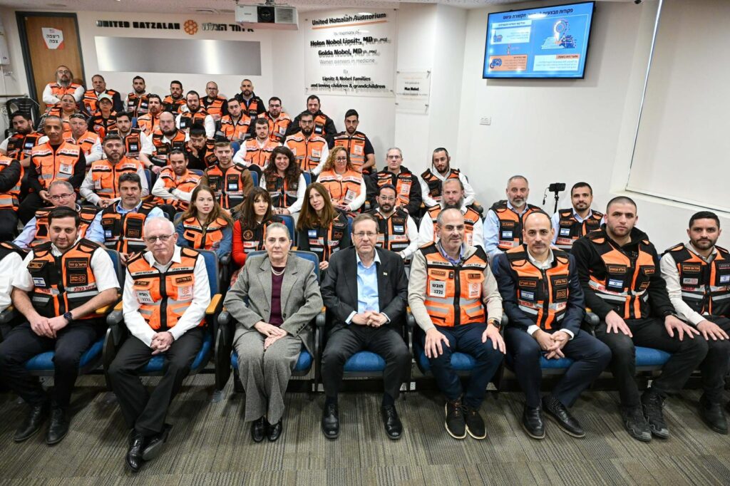 נשיא המדינה יצחק הרצוג ביקר הבוקר, יום רביעי, כ”ב באדר, 11 במרץ, במטה המבצעי הארצי של איחוד הצלה, בליווי נשיא הארגון, אלי ביר.