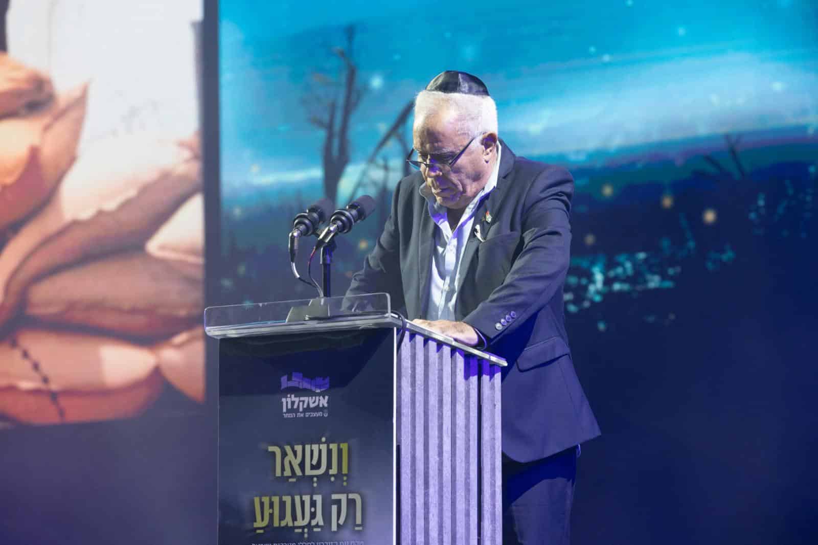 "הורים שכולים, אחיות ואחים, אלמנות ויתומים, תושבות ותושבי אשקלון, מכובדיי כולם,