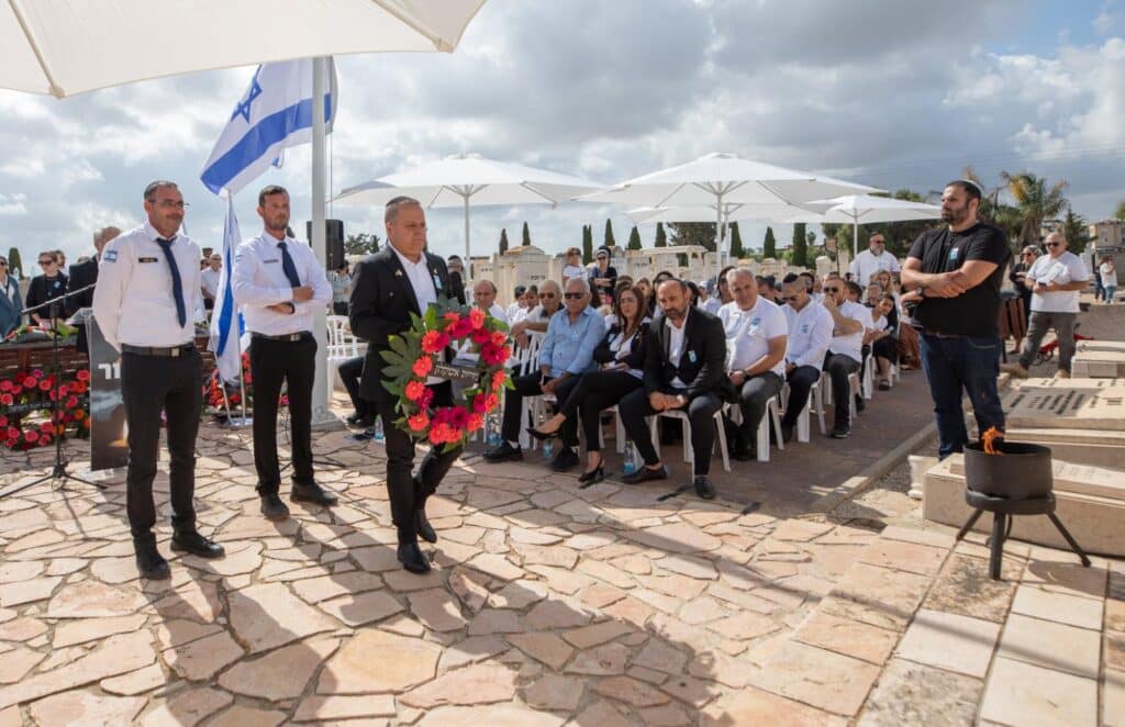 קריאת 'אל מלא רחמים' נערכה על ידי הרב ישראל קרבר וקריאת 'הקדיש' נערכה על ידי יעקב מושיאשוילי – אביהם של נתנאל ז"ל שנפל בעזה לפני 12 שנה ומיכאל ז"ל שנפל בשבעה באוקטובר. בסיום הטקס, על רקע שירת האמנים המקומיים, הונחו בזה אחר זה זרי אבל על ידי ראש העיר, תומר גלאם, יו"ר יד לבנים אלי לחזיאל ורעייתו שונטל, חבר מועצת העיר ויו"ר הועדה לנפגעי פעולות האיבה, עו"ד שי רובין, רוברט גז, סא״ל איציק עובדיה, מפקד מחוז דרום, אמיר כהן, פארמדיק איתן לסרי, טפס"ר משנה שלום מכלוף, נציגי משפחות שכולות, נציג ארגון נכי צה"ל ונציגי גופים נוספים.