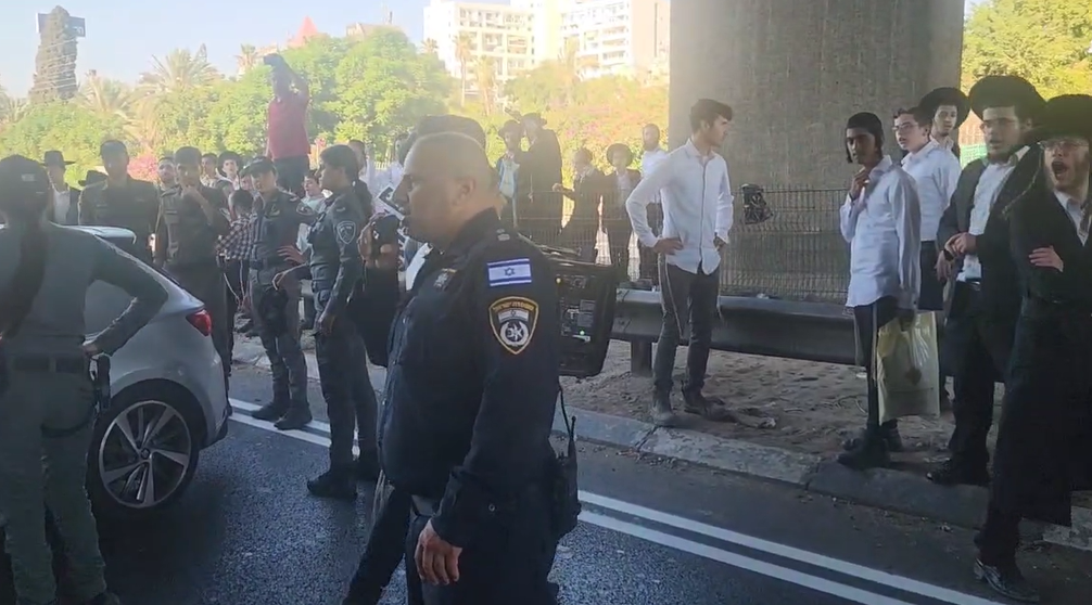 הפגנה סוערת התנהלה על כביש 4, סמוך לכניסה לבני ברק. עשרות מפגינים חסמו את הכביש וקוראים קריאות "נאצים" לעבר כוחות המשטרה, תוך השלכת אבנים וניסיון למנוע מעבר רכבים.