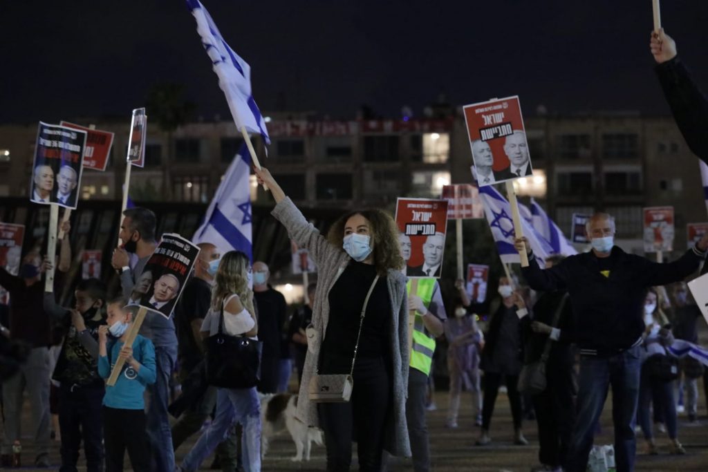 הפגנת התנועה לאיכות השלטון: "מתבייש שיכהן כראש ממשלתי אדם שישב בספסל הנאשמים"