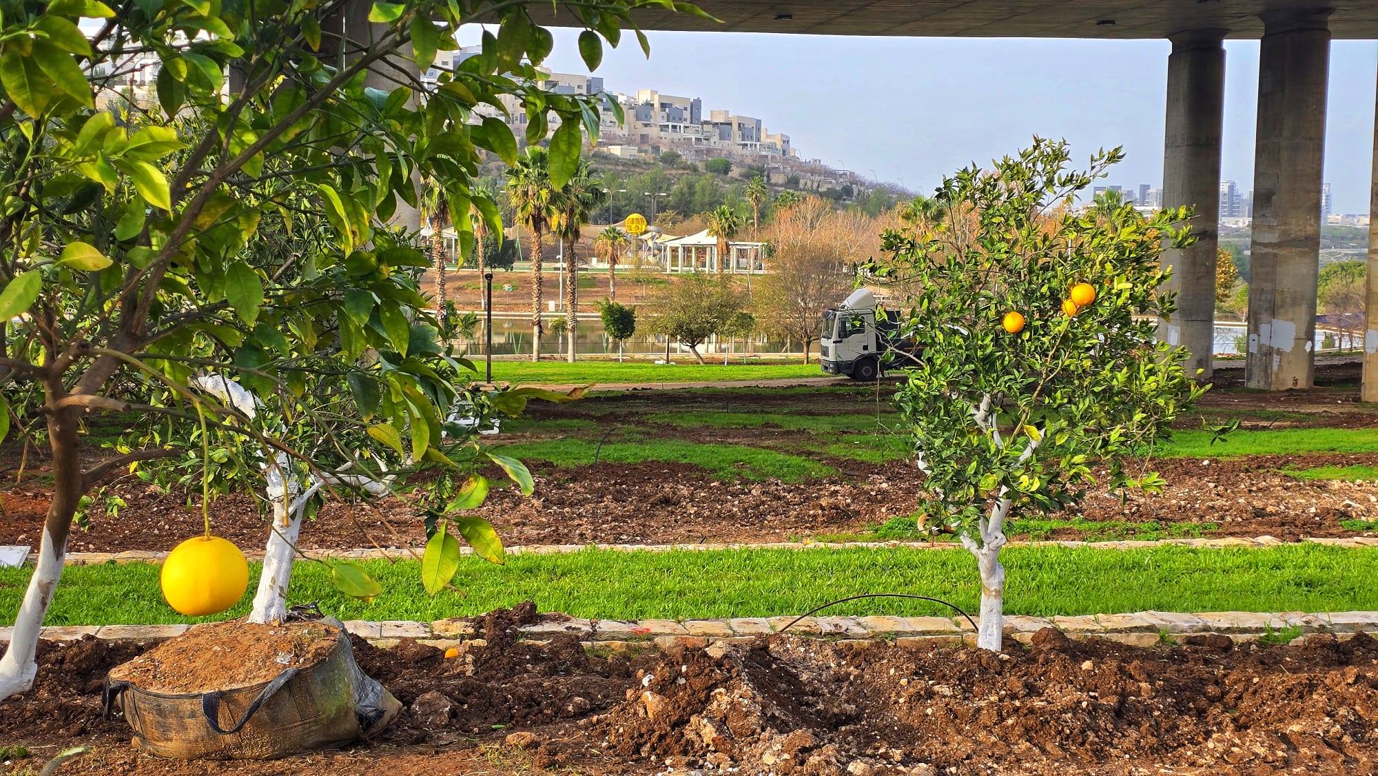 הבשורה המרעננת ביותר היא הקמתו של פרדס חדש בתוך שטח הפארק. מתחת לגשר הפארק נשתלו עשרות עצי פרי הדר, ביניהם תפוזים, קלמנטינות, לימונים, אשכוליות ופומלות. בנוסף, נשתלו עשרות עצי צל באזור המדשאות כדי להרחיב את המקומות המוצלים עבור המשפחות והמטיילים.