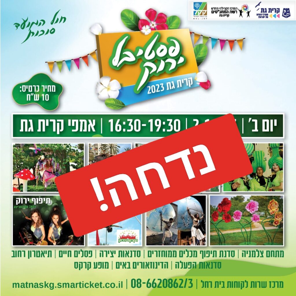 פטיבל ירוק שתוכנן לחול המועד בקרית גת נדחה 》》 להלן הפרטים