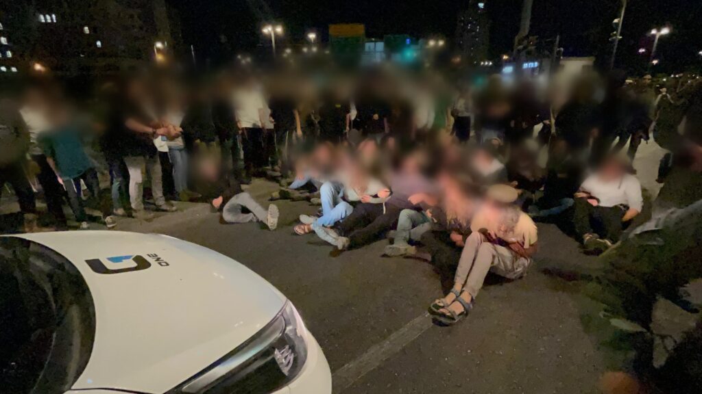 לאחר שקצין משטרה כרז למפגינים כי מדובר בהפרת סדר ומחאה בלתי חוקית, והמתפרעים לא שעו להוראות השוטרים במקום, פעלה המשטרה להדיפתם לעבר המדרכה, שם מתאפשרת המחאה. במהלך חסימה זו, מנעו מספר מפרי סדר, ביניהם מספר ילדים שנשכבו על הכביש, את תנועתם של כלי רכב, תוך סיכון חייהם וסיכון משתמשי הדרך.