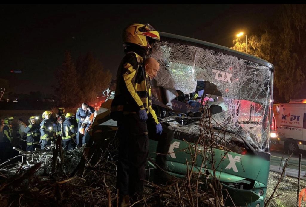 נריה חג'בי וליאור טביב חובשים באיחוד הצלה מדווחים מהזירה: "עקב אופי התאונה צוותי כיבוי פועלים לחלץ לכודים. כמו כן הענקנו סיוע ראשוני לנוסעים מהאוטובוס שנפצעו קשה בינוני וקל".