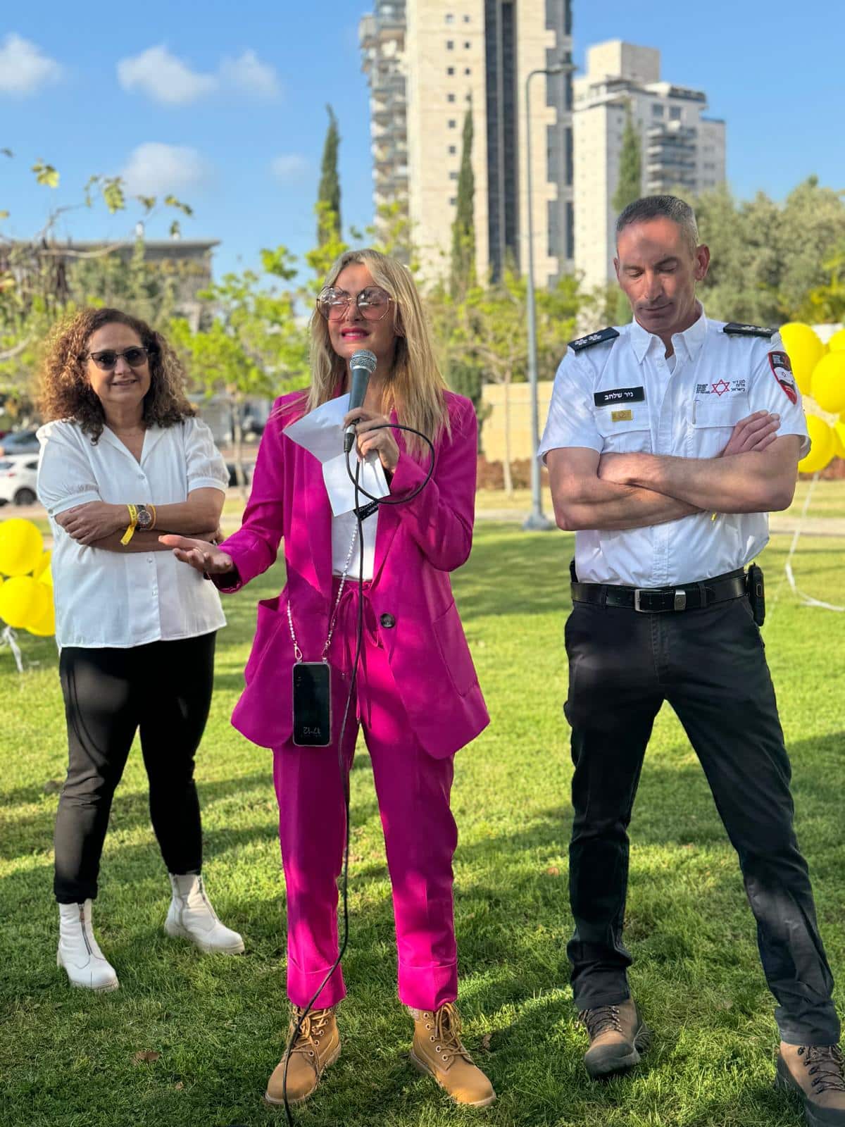 בהמשך, מנהלת המחלקה העירונית להתנדבות רחל רביב וניר שלהב, יו"ר ארגוני המתנדבים, חילקו לכל המשתתפים סרטים צהובים עם הכיתוב 7/10/24.