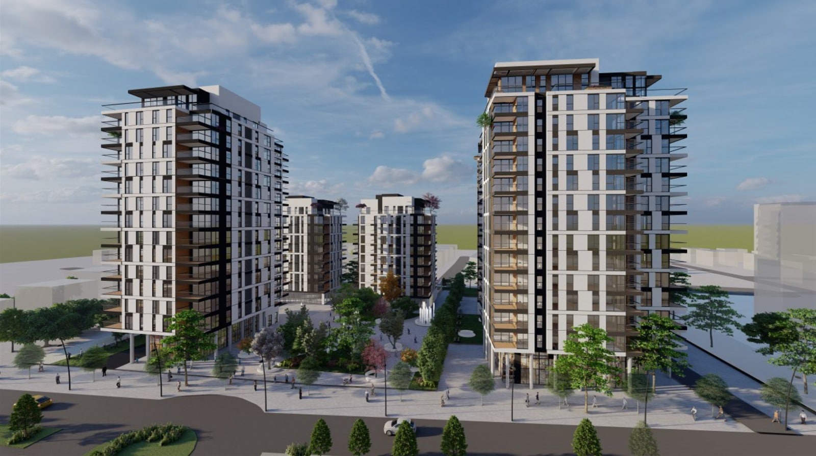 בקומת הכניסה של הבניינים ישולבו חנויות ומבני ציבור וגני ילדים. התכנית כוללת כיכר עירונית רחבה פתוחה לכלל הציבור.